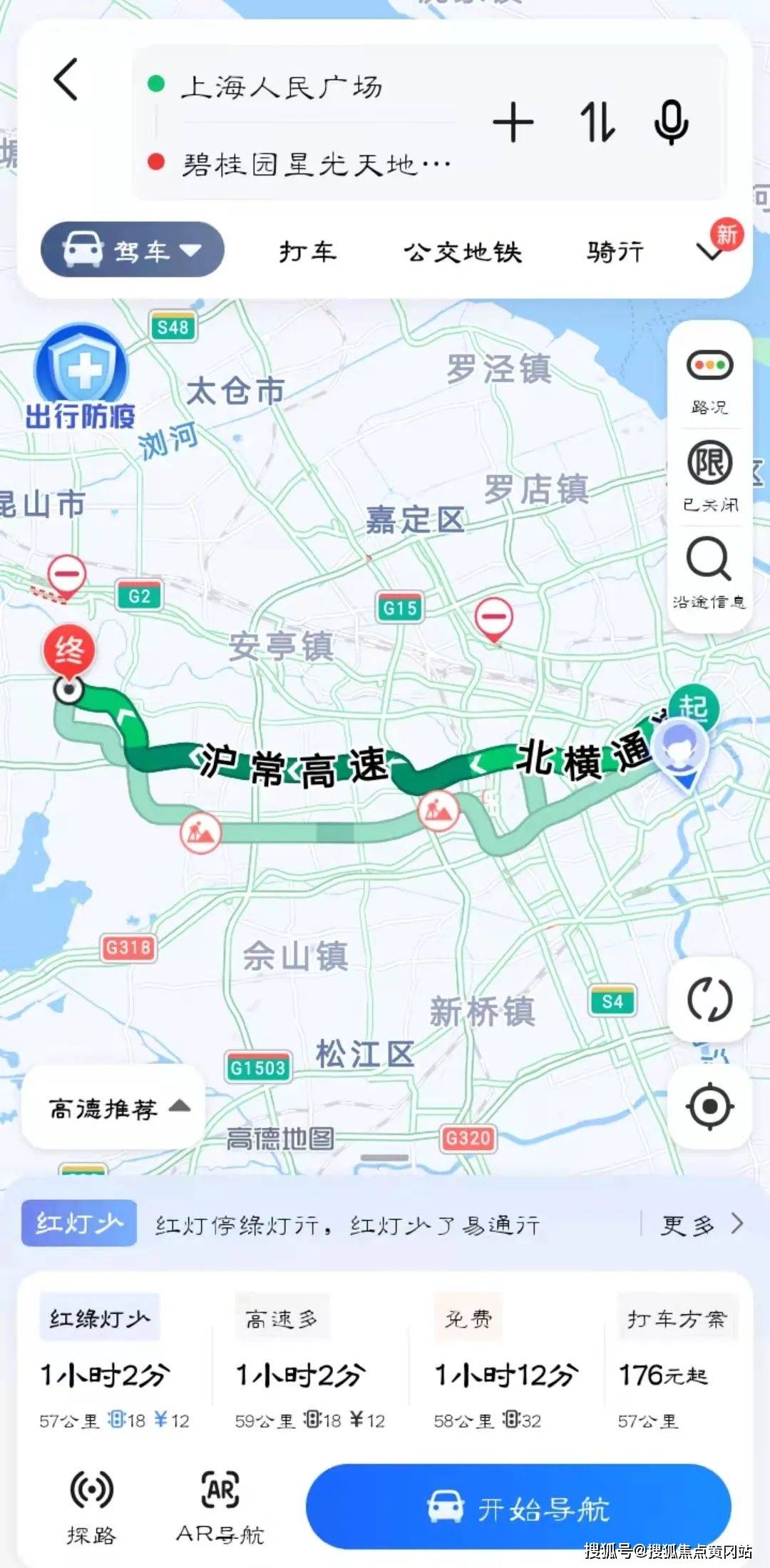 这一次,小新从人民广场驱车出发,自南北高架上进入北横通道后一路向西,借道北翟高架、沪常高速,最终在沪常高速千灯出口下桥,走机场路到达项目所在地。全程行驶约58公里,一路基本绿灯,得利于高速公路的通达便利,耗时不算久。(数据来源高德地图,仅供参考)