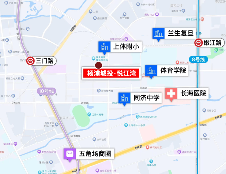 就杨浦城投·悦江湾而言,周边已有10号线、8号线,未来还会增加20号线。