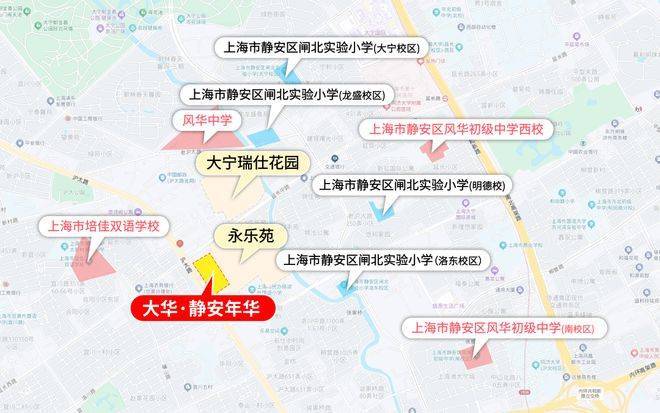 项目步行约900米范围内,风华中学、闸北实验小学两所口碑名校环伺。