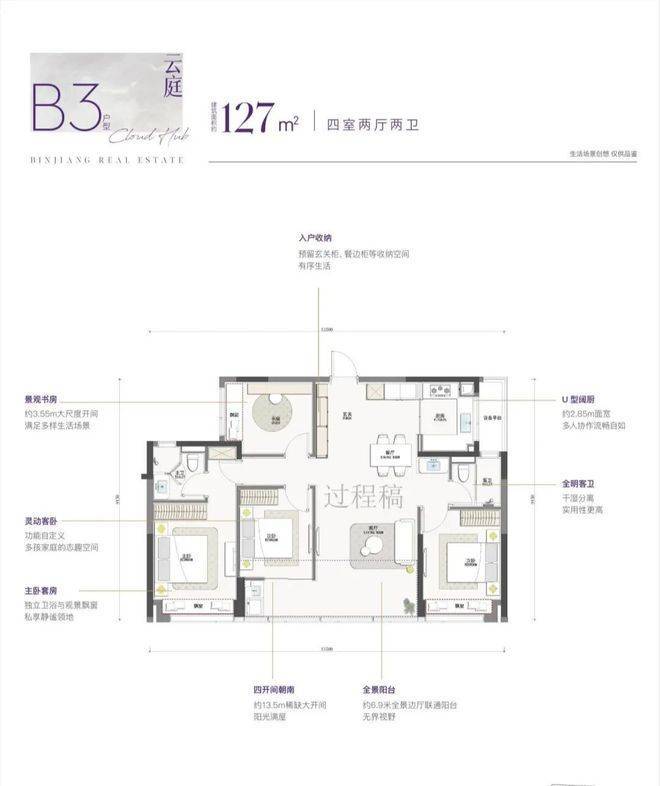 云雾森境,沉浸都市微度假。萃取精英生活底蕴,打造一座悬浮于都市之上的立体生态绿洲,以「一轴・五境・七景」的叙事性布局,覆盖从归家到休闲的全场景需求。项目作为云城首个好房子试点,匠筑超 2000㎡雅奢泛会所,涵盖恒温泳池、健身房、篮球场、瑜伽室、私宴厅、女王厅等高阶配套,同时践行「儿童友好社区」理念,构建室内外联动的「双乐园」探索系统,敬献全龄乐活的理想生活。
