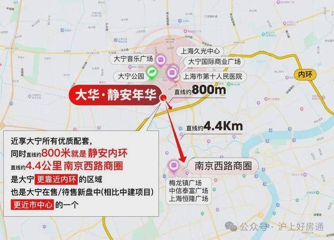 【大华·静安年华】项目可谓双王炸区位,直线800米贴脸静安内环,一脚油门就能杀进上海城市动脉,畅达全市核心节点;约4.4公里直插静安寺-南京西路心脏,直接把全上海顶流的繁华,变成你家的「日常生活」。