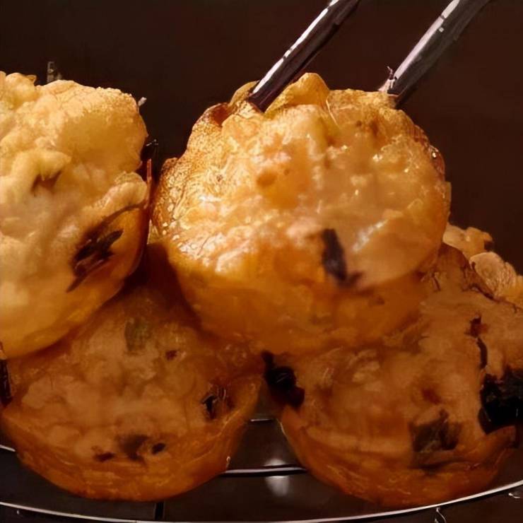 这是苏州街头的传统油炸小吃,用面糊包裹着萝卜丝、土豆丝、韭菜等食材,放入特制的模具中油炸。炸好的油端子外酥里软,面糊的香混着蔬菜的鲜,蘸上少许辣酱,味道格外爽口,是很多人的童年回忆。