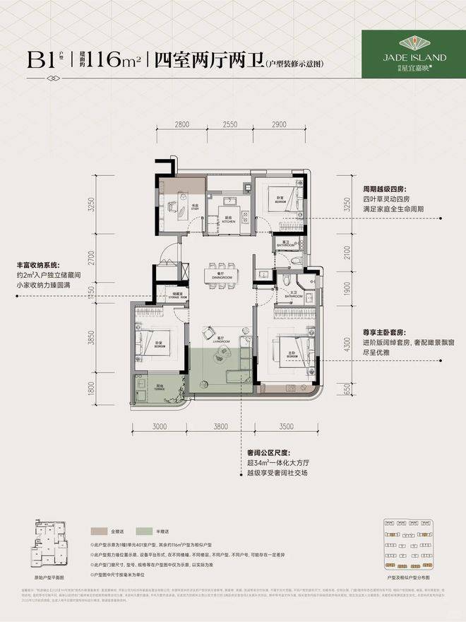 116㎡户型,刚需改善首选,性价比之王!四叶草布局,四房设计,四角卧室,私密性满分,三代同堂互不打扰。入户即享约2㎡独立储物间,收纳空间大升级,杂物告别凌乱。 超35㎡一体化大客厅,客餐厨无缝衔接,聚会聚会尽显大气。主卧套房升级版,观景飘窗加持,小空间也能享受大享受。