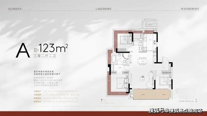 小高层:建面约123㎡三房两厅两卫,客厅面宽4.5米,270°转角飘窗设计9