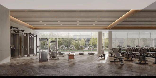 除了常见的健身房、恒温泳池、会客厅、私宴厅等配套,项目还加配亲子教培、品茗阅读、智慧助老、VIP室、群众服务中心、户外庭院、共享办公等多元业空间。