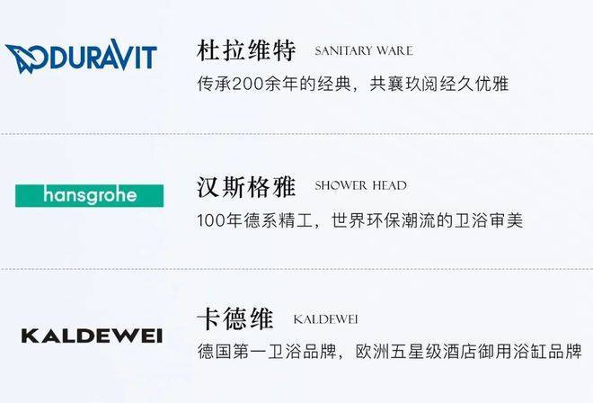 洁具档次也是向国际星级酒店的标准看齐,臻选汉斯格雅、杜拉维特等知名品牌,还有欧洲顶尖卫浴品牌——卡德维,全德系卫浴装标;还配备了开能前端净水、怡口末端净水等双重高端净水系统,全部世界级大品牌!