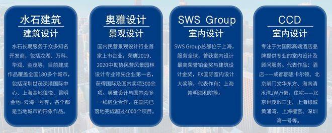 项目整体容积率2.0,数据指标更低。并邀请分别是水石国际设计、深圳奥雅景观设计、SWS group室内设计公司、世界第三亚太第一的室内设计公司CCD,四大世界级设计巨匠共同联袂打造。