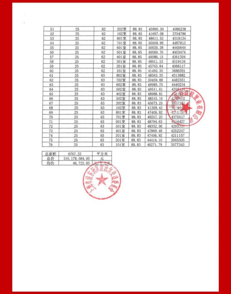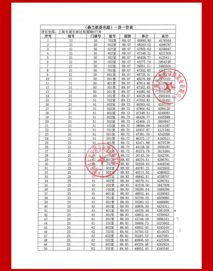 一房一价表: