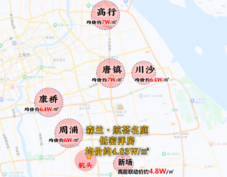 对于浦西来说“4”字头新盘不足为奇,可在浦东就显得尤为珍贵,板块均价基本需要6-7万/㎡左右,即便是同维度新场,高层产品的新房联动价都已经4.8万/㎡。