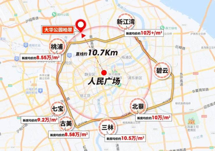 与大华公园柏翠同纬度的板块,新房均价起码约8.58万/㎡起,单价约10万+的区域比比皆是。