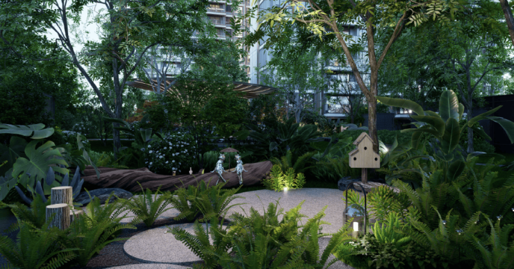有潮汐花园(社区外围口袋花园)、浔湾秘境(会所式入户)、社交剧场、漫游森境、下沉会所、阅读花园、社交花园、自然博物馆等,满足不同人群的需求空间,包括萌宠。