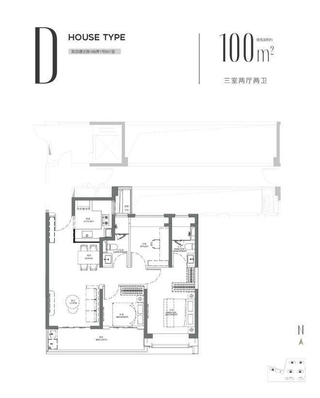 约100-103㎡ 宽适成长款:精准适配成长型家庭,经典的三房两厅两卫格局,南北通透。特别是采用了客厅与次卧阳台打通的设计,极大地拓展了生活实用空间的通透感。