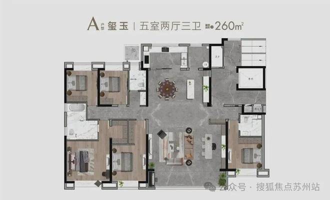 A户型 玺玉 丨 五室两厅三卫 建筑面积约260m²