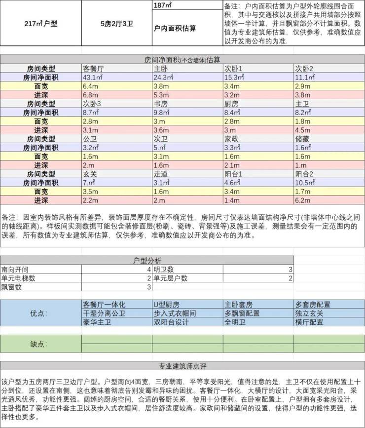 2、建面约217方五房两厅三卫: