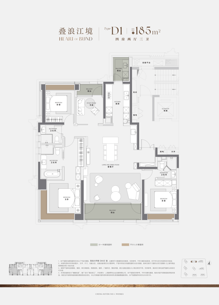 当然,作为一线滨江首个新规后作品,项目建面约185㎡户型的设计也是亮点满满。