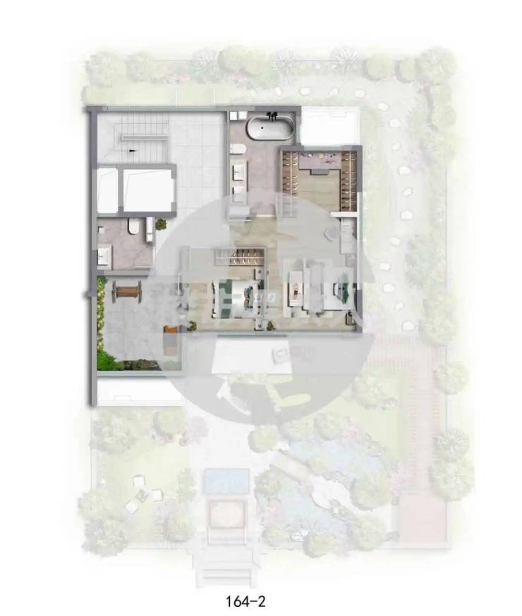 二层双卧朝南,主卧尺度奢阔,起居室→衣帽间→卫浴间层层递进。较一期新增的地上楼层露台设计,更延伸了室内的使用空间。
