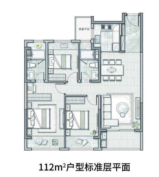 建筑面积约112㎡,3房2厅2卫户型