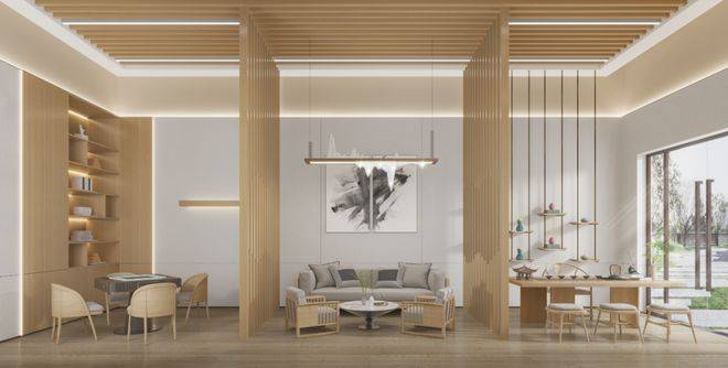 3. 约6.4米大面宽客厅连接观景阳台,无界延伸生活维度,享受生活的美好与从容