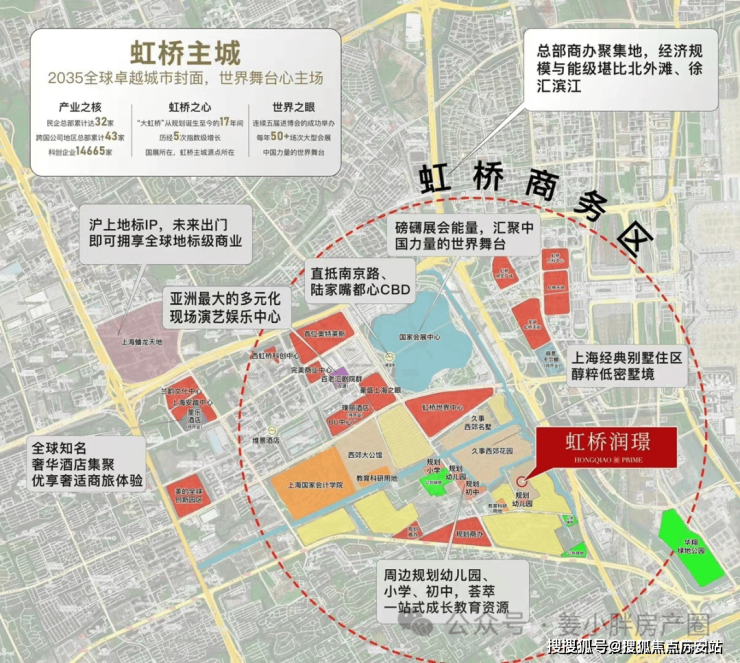 论地段:大虹桥是各家必争之地;而项目左手国展、虹桥商务区,本就是大虹桥价值第一梯度,右手更连接闵行古美、七宝等高阶板块。