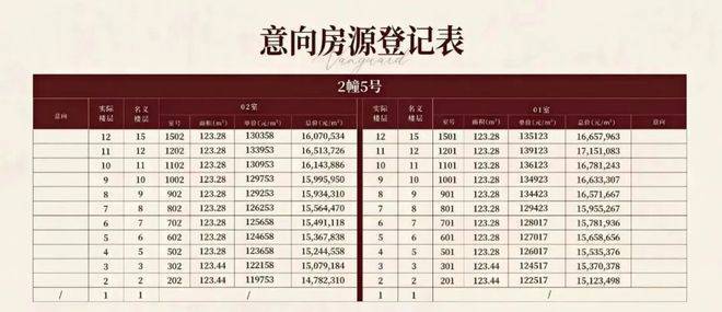 上期一房一价表: