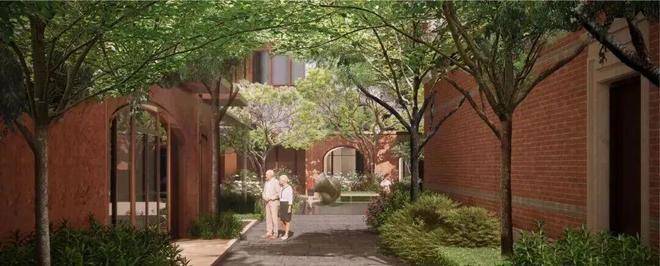 项目由GOA大象设计创始人陆皓先生操刀,汲取外滩西式古典建筑风格,以红砖为主材,复刻老石库门的浪漫风貌,力求打造为一处“新时代里弄住宅”。