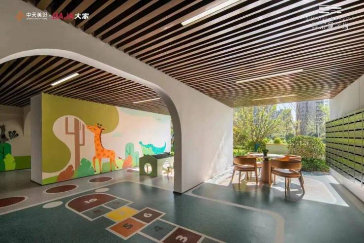 出于户外活动受天气因素的限制,中天大家·宸澜学府营造全龄主题社交空间涵盖学步区、动力基地、书香天地和长者乐活天地等,满足全龄化需求功能,让架空层成为全家老幼欢聚的生活据点,重塑人与人的紧密链接。