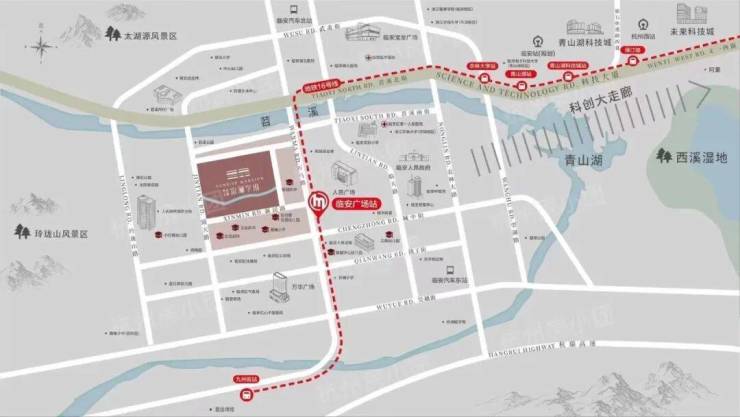 发展潜力与城市红利:临安距离杭州城市副中心未来科技城地铁换乘枢纽绿汀路站仅约35车程(地铁10站)、西站399米第一高楼仅有约25公里。通过16号线无缝对接杭州各地铁线,轻松实现半小时交通圈,是杭州城市发展西进战略的桥头堡,区位优势明显。