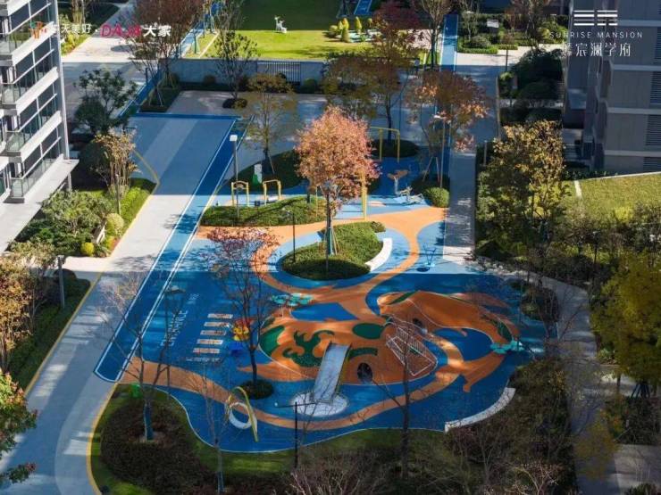 从空中俯拍,这座以水为灵感的园林,如起伏的水波一般,串联起多重花园景观、童话PARK、星光草坪、景观戏水池、户外汗水营地、球类运动场地、健身跑道、知己庭院、晨语茶宴......满足全龄段业主的户外活动需求,并在清新自然的环境中,享受健康、社交的生活意境。
