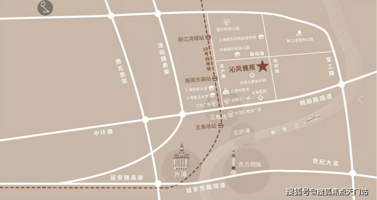 项目位于新江湾城 安徒生童话公园 以北,政和路与国晓路交汇处,位置较为优越;距离10号线新江湾城站、殷高东路站、三门路站都很近;自驾出行,可开车直通逸仙高架至市区。