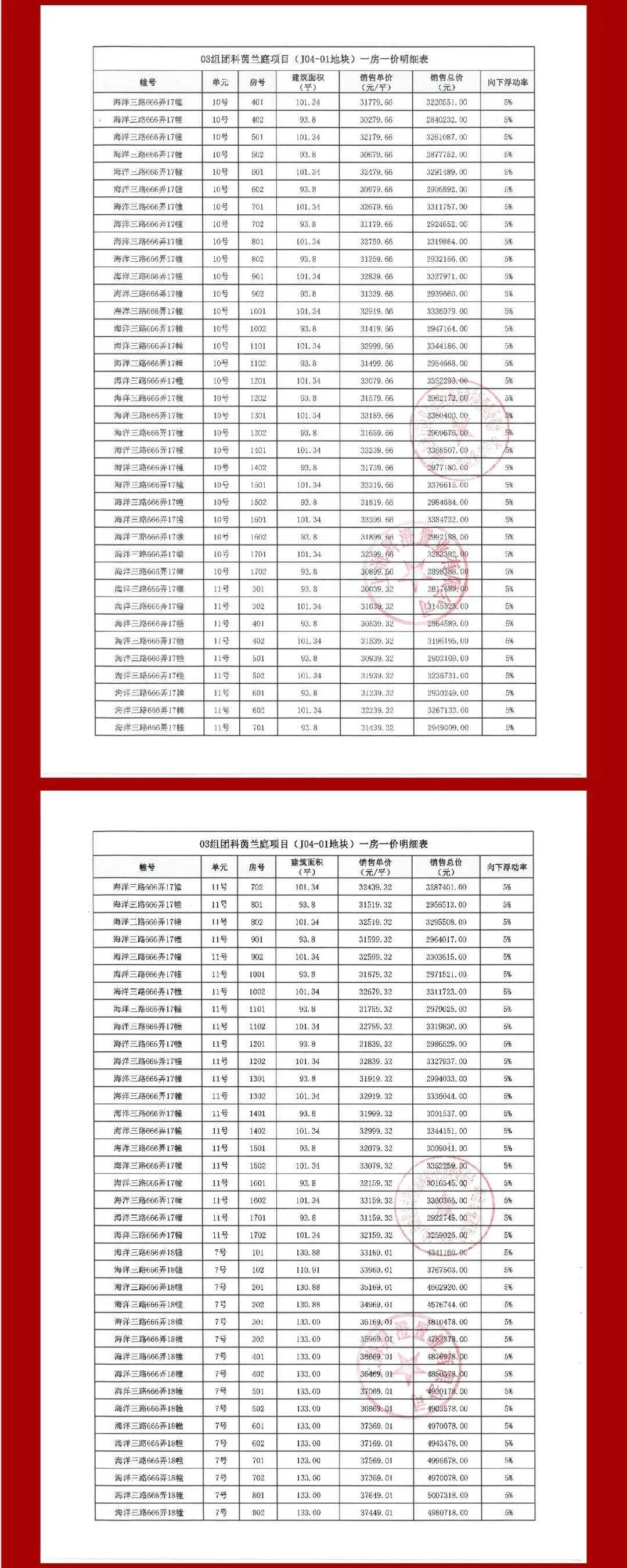 一房一价表