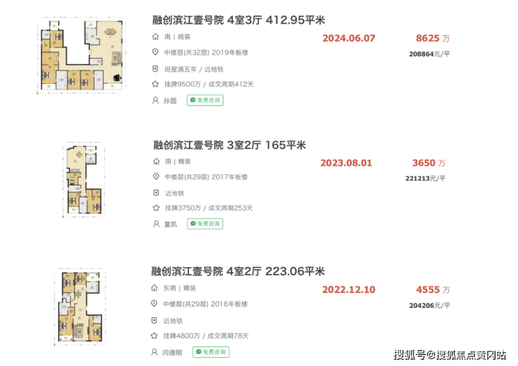 其三,“壹号院”保值性,因为一流的地段和产品,所以每个项目的价值与价格都非常的坚挺,比如,滨江壹号院三期开盘价12-13万元/㎡,如今二手房售价达20-22万元㎡,溢价率达66%。而隔壁的绿地黄浦滨江,2016年开盘价13万元/㎡,如今二手售价15-19万元/㎡,溢价最高仅46%,溢价相差20%。