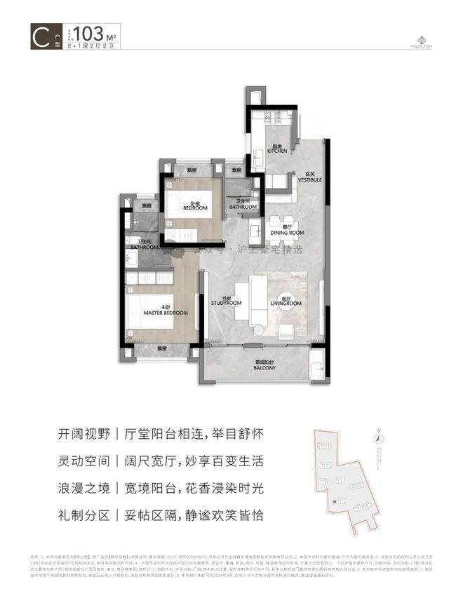 功能进阶甄选建面约103㎡三房户型,餐客厅阳台一体化,舒适而不浪费,适度而不将就,让家在各类功能场景自由切换;灵动次卧,尊重家庭成员的兴趣爱好,可自行改造成个性空间;并考虑当下生活收纳需求,玄关/厨房/阳台等空间实现多样化收纳扩容等,让改善需求一步到位。
