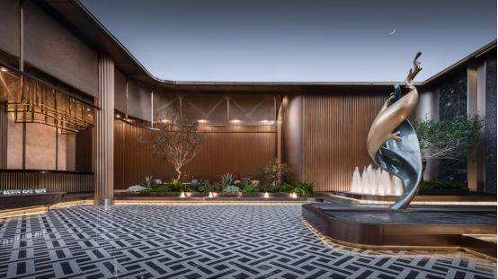 按照翡色礼境的景观理念,从入口的奢石、到内部的水景、雕塑甚至是局部的海派拼花铺装……每一幕视角皆是壁纸。