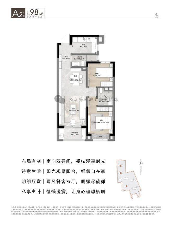 其中,建面约98㎡爆款户型,餐客厅一体化,连贯阔朗阳台,融合多维生活场景,实用性极强;双卧空间较为均衡,酒店式主卧带独立卫浴、观景飘窗;次卧空间宽适,可定制各类功能,适合单身、新婚、小太阳各家庭阶段……相比同面积段户型,以更舒适的空间尺度提升居住体验。