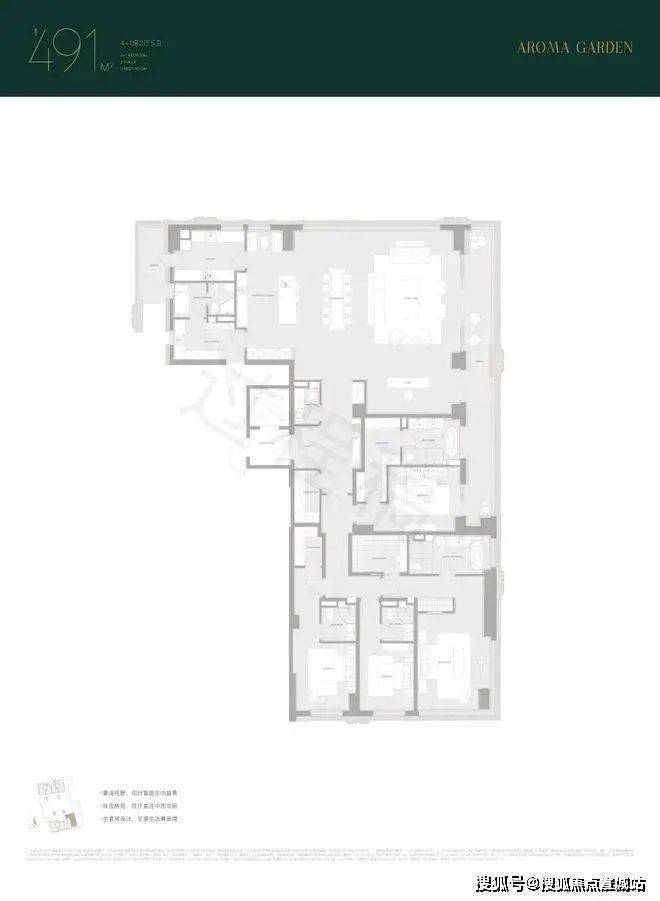 特别是建面约491㎡户型,是我今年看过的近500㎡户型中设计更出彩的一个。