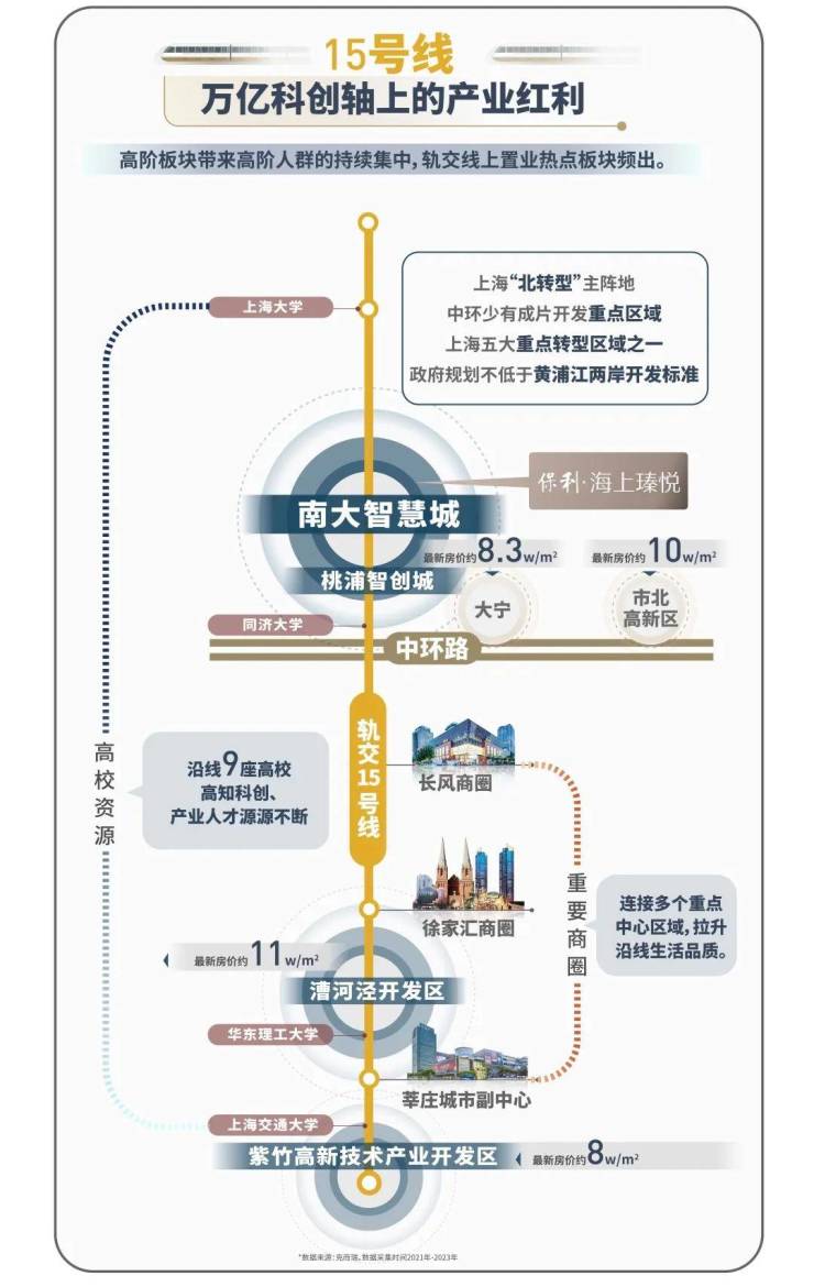 通过15号线可快速直达桃浦智创城、真如、长风、徐家汇、紫竹高新区等板块,通往市区也在1小时范围内。