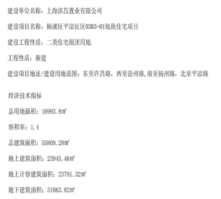该地块坐落于杨浦区平凉社区,四至范围:地块东至许昌路,西至汾州路,南至扬州路,北至平凉路,总用地面积16993.8平,容积率1.4,地上建筑面积23945.46平,为二类住宅组团用地。