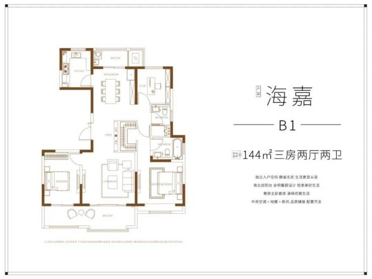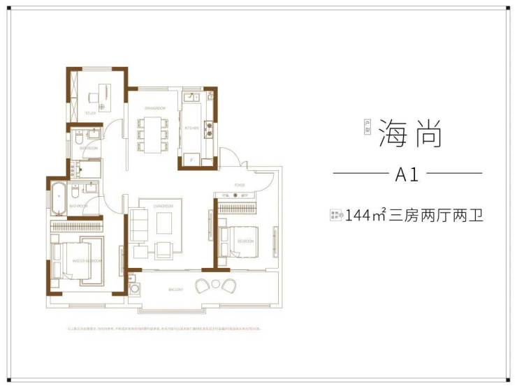 目前开盘的1号楼均为144㎡户型,只做了3房2厅2卫,超大的双联阳台,尺度感拉满。
