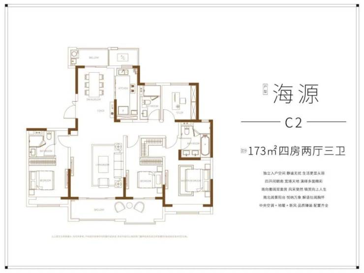 此外还有173㎡的户型更为优秀,3房朝南,双联阳台大开间,采光极好。