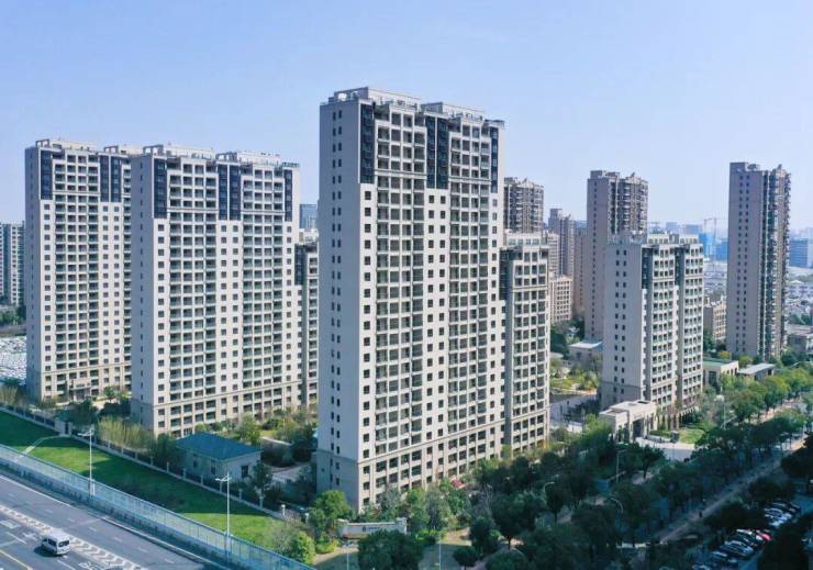 它整体偏现代风格,外立面以米棕色+深咖色为主,与近两年的住宅项目比,窗墙比低了一些。