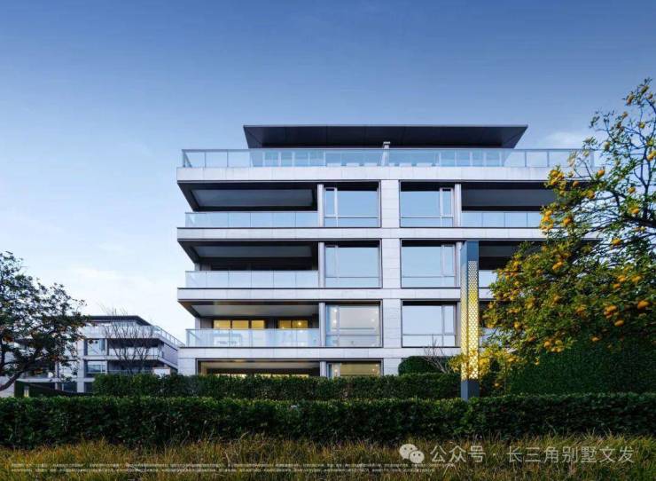 定位:精装纯叠墅社区,容积率仅1.1,主打低密坡地院墅,外立面采用全石材干挂+铝板+玻璃幕墙,滨江物业提供服务45。
