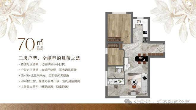 面积59.7-70.86平 总价320万起,法式轻奢 全明小户型公寓