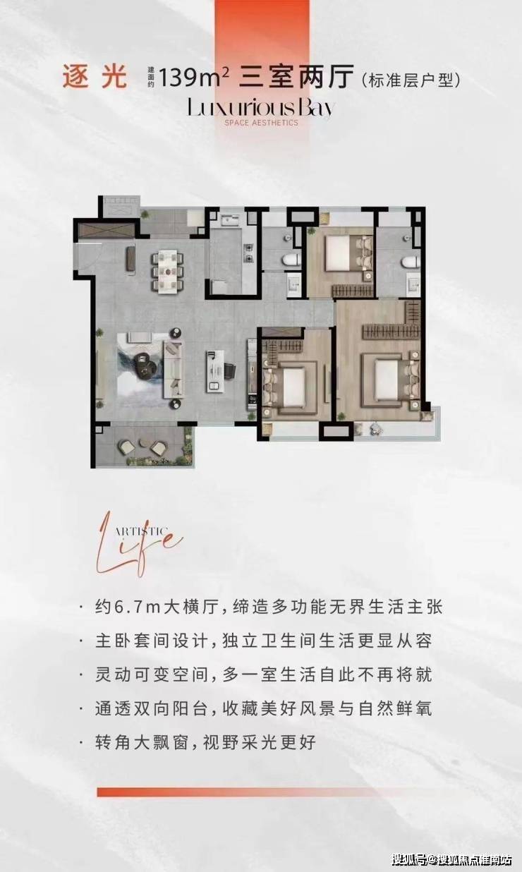 高层户型:建筑面积涵盖 98 - 195 平,主打 3 - 4 房户型,其中三房集中在 98 - 138 平方米,四房为 156 - 195 平方米;标准层层高约 2.95 米,大平层层高提升至约 3.1 米,得房率达 83.2%,还搭配多飘窗设计,空间利用率较高。