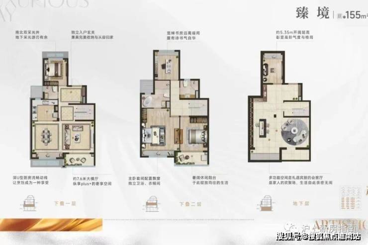 叠墅户型:建筑面积为 139 - 155 平,其中上叠约 139 平方米,下叠约 155 平方米;叠墅首层楼高约 3.4 米,二层约 3.2 米,地下室层高更是达到 5.35 米,空间宽敞且层次感强。