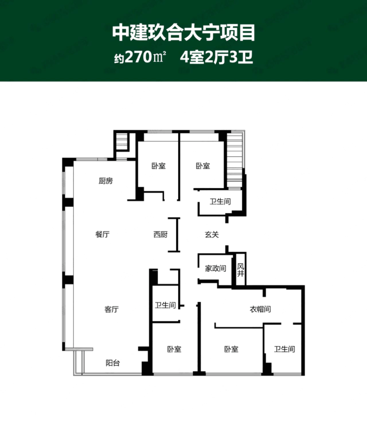 项目预计主力建面约120-150-175-200-270㎡大户型以及少量400-520㎡顶层复式,其中,建面约120㎡小户型共计264套。