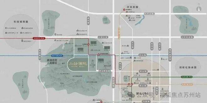 拥有着一隧道一环两轨,全维立体系的一个交通网络。 刚才我们讲到的河山隧道在我们项目南边,车程5.4公里,约10分钟左右就可以到达狮山CBD,向北的话1.8公里,约5分钟左右可以上太湖大道,向西的话可以到达科技城和绕城高速,向东的话我们直接可以连接中环西线畅达全城。市内外交通都很便捷。绿色出行公共交通的话,我们项目北面华山路有轨电车1号线,白马涧生态园站离我们项目较近,和苏州的地铁1号线,3号线都可以无缝换乘,同样畅达全程。同时还有政府正在规划的贯穿整个苏州东西两个方向的地铁9号线,未来也是从我们周边过的。