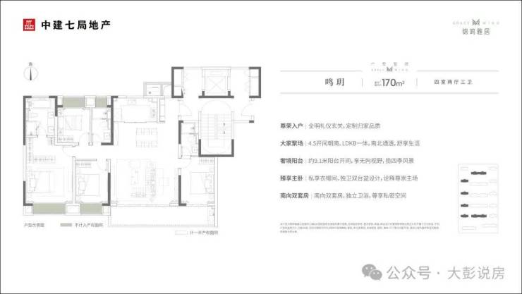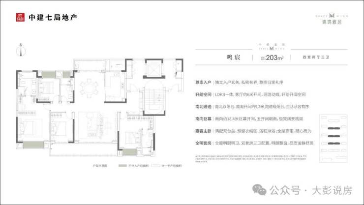 建面约143/170/203㎡户型,四室格局,南北通透;南向大面宽,双联景观阳台,成就郎阔空间尺度,尽揽清风与阳光;独立入户玄关,私密有界;主卧套房设计,独享天地,自成静界。