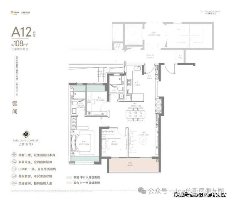 建面约108㎡的明星户型 ,则在有限的空间内做到了尺度感与舒适度的最大化。横跨客厅与次卧的巨型宽面阳台,采光面极为奢侈