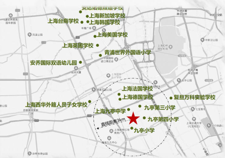 项目北侧为上海高端涉外学校聚集区,汇集了大量涉外双语教学的顶级私立学校资源。