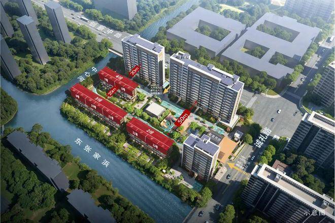 ②【边套户型客厅约6.67米敞大开间】山墙面精心开窗与约3.3米奢适层高,打破空间压抑感。大面积玻璃,南向视野无遮挡延伸,绿化与河道景观映入眼帘,光影通透流转,自然与生活无缝衔接。